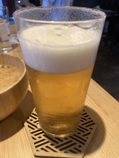 いつも並んでいるので敬遠していましたが、久々の完全休養なので、並んででも食べる!という強い決意のもと13時過ぎに訪問!えっ!並びなし?ということで先客4名の静かな店内に案内されました。ロースかつ定食と決めてきたし、贅沢にメンチカツを追加するとも決めてきたので、そのまま発注!ドレッシングと塩の説明書を読み、たまたま裏を見るとアルコールなどのドリンクメニューあり!店員さんに生ビールの追加と料理との同時提供をお願いしました。この後からお客さんが次から次へと来て、外待ちが発生していました。まずは漬物とソースが運ばれてきて、まもなくすると豚汁、ロースカツ、熟成メンチカツが着丼、更に生ビールも登場!ピンク岩塩を小皿に用意して、ロースカツから一口!超柔らか!!の激ウマ!塩が肉の甘味を目一杯引き出してくれます。そして、生ビール!最高!昼から贅沢ランチ!そして、メンチカツは半生かと思うような柔らかさ!肉汁が口内に広がり、そこにビール!ヤバし旨さ!生ビールを飲み終え、豚汁に一味唐辛子を振りかけ味わってから???ご飯がない!店員さんにお願いしてもらいます。ビールを頼んだ時はご飯&豚汁は後から提供というサービスがあったてもいいかも... 千切りキャベツにはトリュフドレッシングを回し掛け、これも美味しドレです。一気にベジ補給してから、温かご飯でロースカツとメンチカツの半分を平らげていきます。ロースカツにはソースも付けて味わいましたが、岩塩の方が好みかな?残り一切れのロースカツとご飯の合わせ食べにて完食!なんだこの幸福感!また絶対来る!次はかつ丼にささみ揚げ追加とビールと決めました。最高のランチ、ありがとうございました。ご馳走様でした!