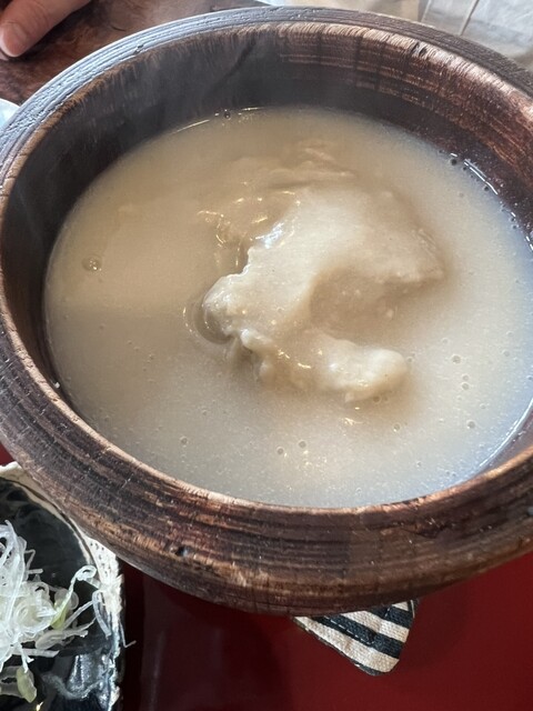 どろどろ濃厚蕎麦湯に浸かった蕎麦がき。