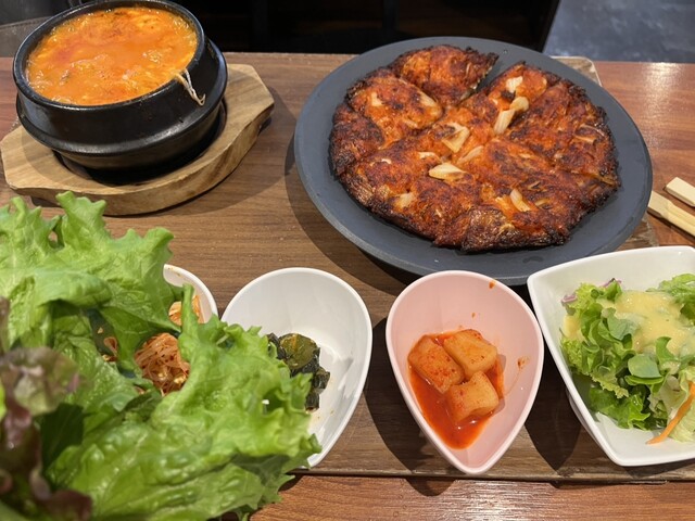 海鮮チヂミ、刺身豚足、白センマイも追加で。
