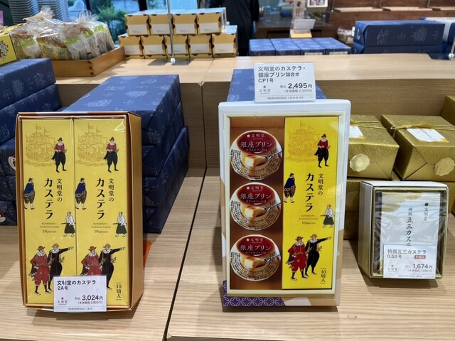 文明堂の工場直売で普通に買うと一つ4000円くらいするカステラの二級品がとても安く買えます。お友達オススメのキューブのお菓子が美味しかった!パンみたいなチーズが入ってるやつ。あんことレモンチーズ味もありました。