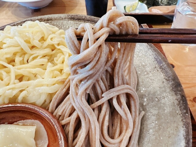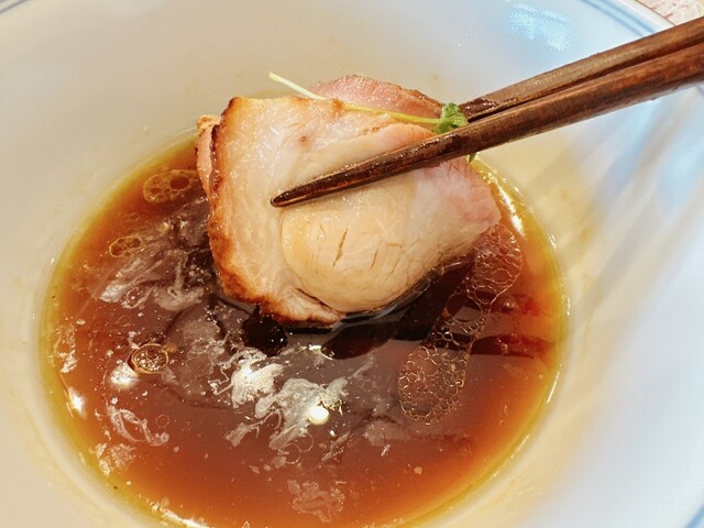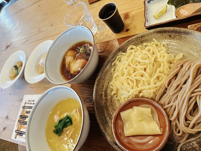 FeeLつけ麺スープダブル、香り豚肉雲呑、海老雲呑