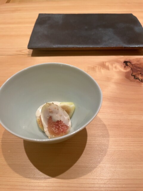 無花果の胡麻餡かけ。 いちじくに胡麻の風味が合うのは驚き。