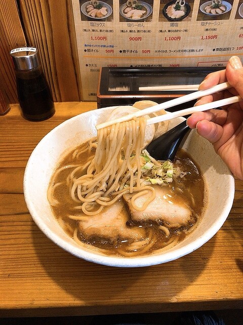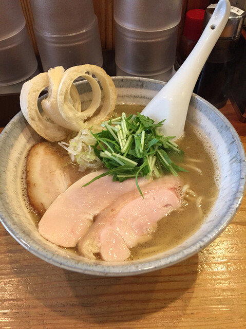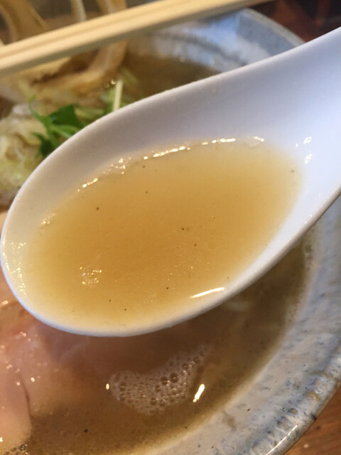 この塩らーめんのスープも、どこのラーメン店のよりも複雑な味わいで、それでいてバランスいいんです。