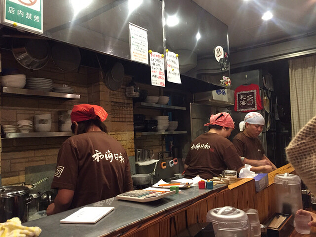30分ほどで店内に。とっても清潔感のあるL字のカウンター席。少々狭いのは否めませんが、絶えずニコニコされている木下大将と女将さんとベテランそうなスタッフの女の方の動きが素晴らしいので、全く違和感ありませんでした。