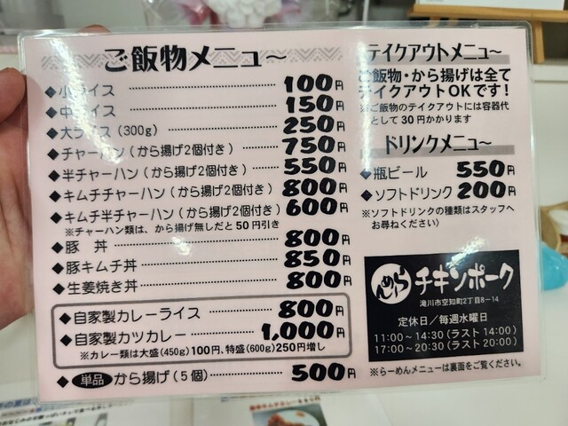 おれはチキンポークらーめん以外のらーめんを注文する時はチャーシューをトッピングし、麺と具材をほぼ完食した後のスープで作ってもらいますが、雑炊の具材用にチャーシュー1枚、からあげ1個残してみるのも、何だかイケそうな気がします。