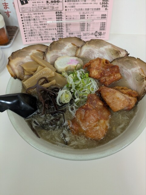滝川市の夜は、らーめんチキンポークのチキンポークらーめんから始まる。