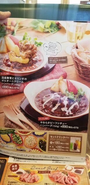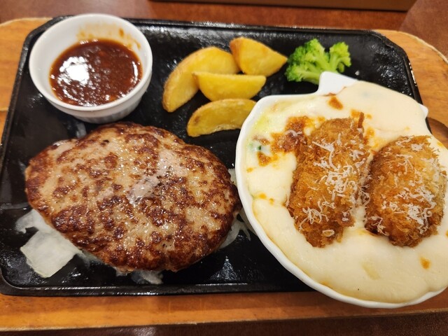 冬のシーフードグラタン&直火焼きグリルフェアが開催されていた時、グラタンをこよなく愛するおれは、ステーキでもソーセージでもなくハンバーグも食べたかった事もあり「手ごねハンバーグ&溢れシーフードグラタン」を注文しました。