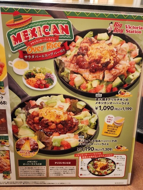何の気なしにBig Boyのアプリを見ていたら、期間限定でメキシカンオーバーライスが提供されているので、太陽の男であるおれは、いても立ってもいられなくなり、手ごねチーズ包みハンバーグのメキシカンオーバーライスとカリカリフライドポテトのレギュラーにドリンクバーをつけて注文しました。
