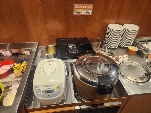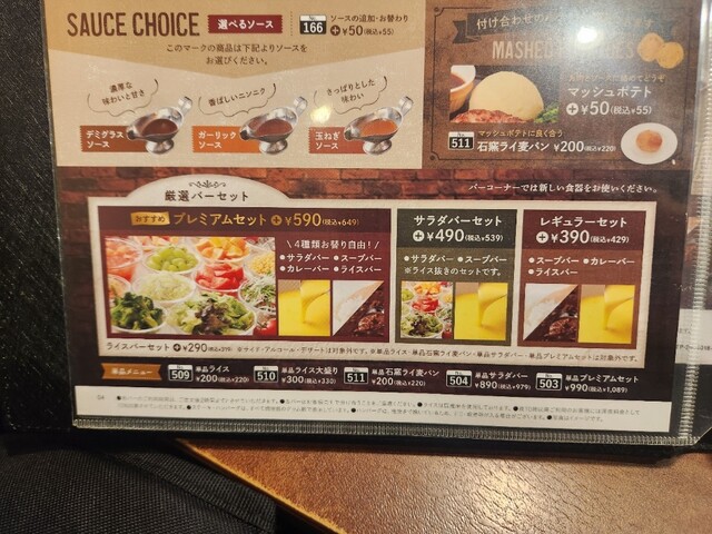 セットメニューにライスバーはありますが、ライスバーとカレーバーのセットは無い。サラダバー、ライスバー、カレーバーのセットはありますが、サラダバーも込みになっているのに、サラダバーも含んだセットを注文してもしょうがないので、今回はカレーは我慢して一期一会の精神で食事をしました。