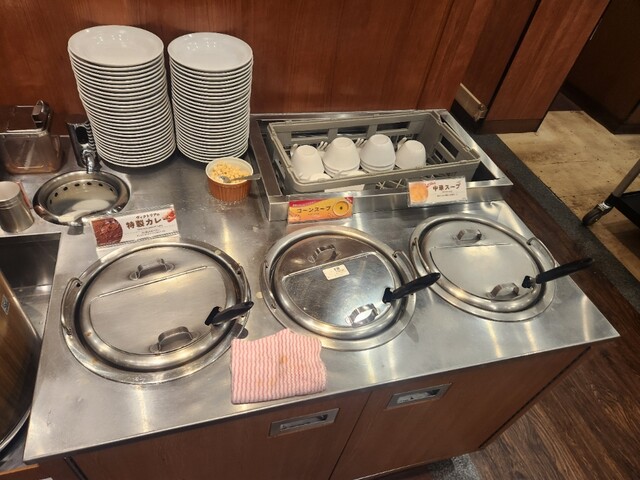 サラダバーとスープバーは込みですが、いつもはライスバーとカレーバーも付いてるバイキングセットを付けているので、カレーとライスも取りそうになる。あぶねー!