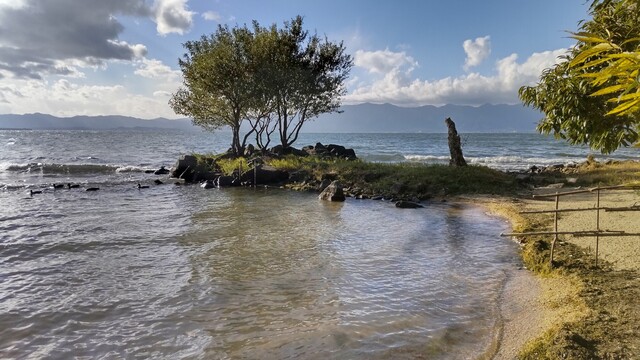 当日は風が強くて琵琶湖は海のように波立っていましたが、夕方になり少し落ち着いてきました。