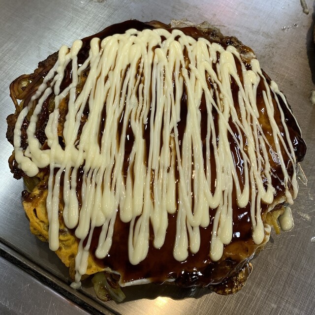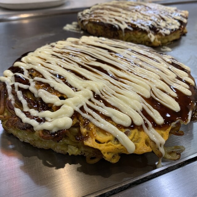 山芋たっぷりと思しきお好み焼きはフワフワで谷九の