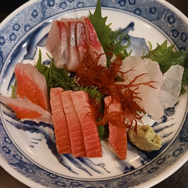 刺身盛合せは白身を中心に中トロを含む8種盛り。