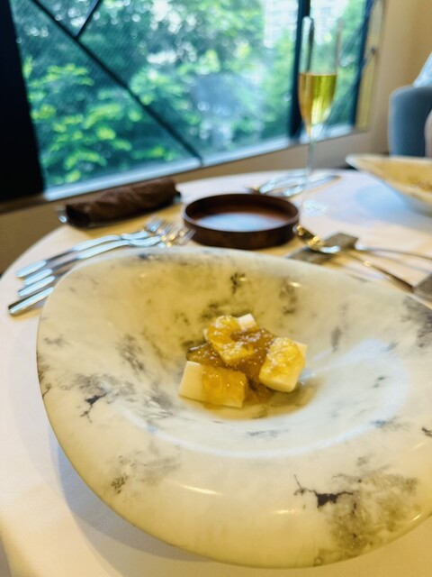 1品目のアミューズ。お皿に乗ったお料理で無くて、
