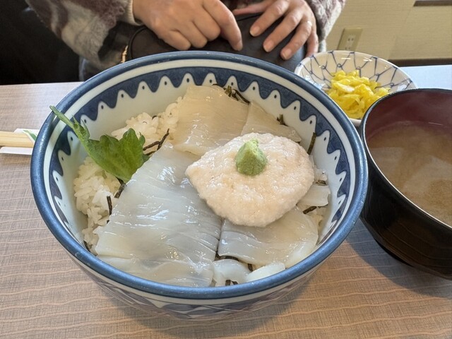 ホタテサーモン丼、イカ刺しトロロ丼、うにイクラ丼、いか焼き