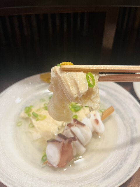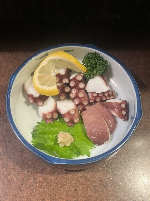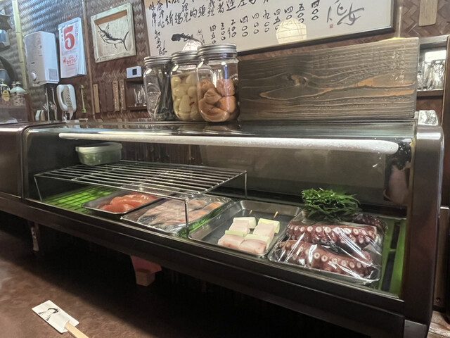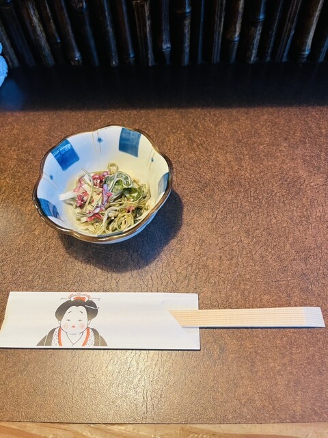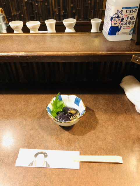 タコとキュウリの酢の物海苔付きだしをつまみながら隣のお姉さんに