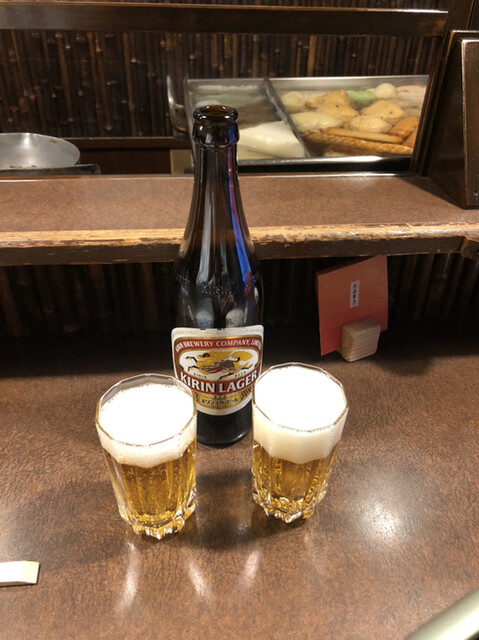 いつものキリンラガービールをいただきながら、おでんを注文。