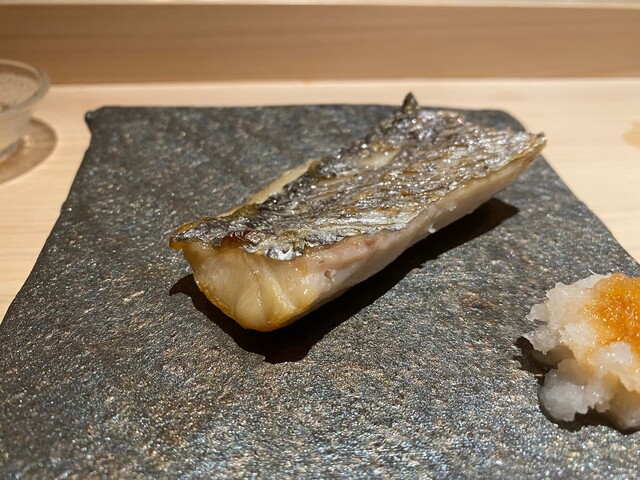 「焼き白子」 〜なぜかご飯の上に乗っているのですが、言われた通り「かき混ぜ」るとTKGの頂点をこえる味でした。