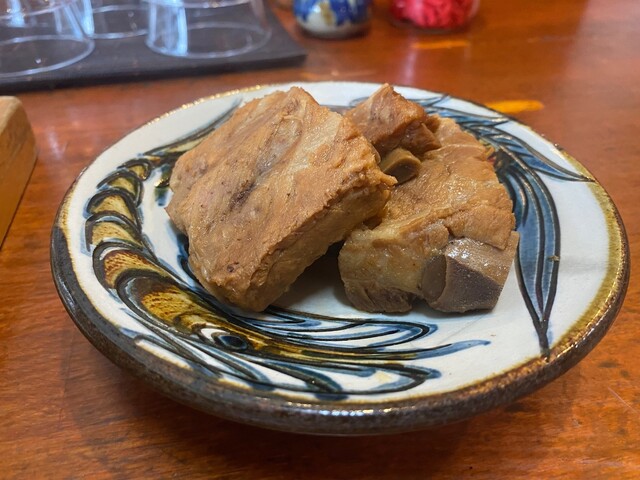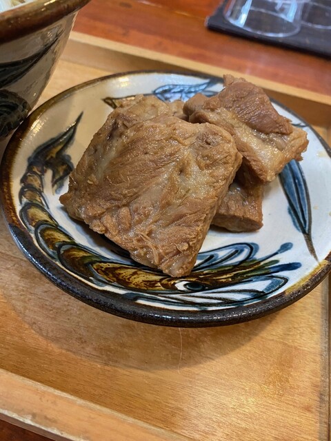 別皿の本ソーキは甘辛の味で、唯一の甘味でもあるので 時折ローテーションに混ぜながら そば・出汁・チキナ雑魚ご飯・そして時々本ソーキという沖縄そばの四重奏が奏でられ 心地よく10分否15分だろうかすすり続けた。