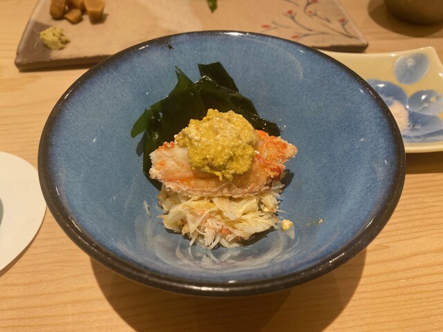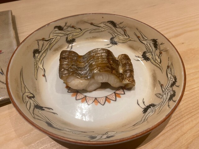 最初は白身の刺身から始まり、 焼き物、小肌、白エビ(富山産)、マス(北海道産)、ホタルイカ(富山産) この辺りから握りがちょいちょい出てきて・・・ 最後の方は 炙りノドグロ手巻き、とろ鉄火巻き、そして黄身と白身が反転した卵焼き おそらく16品 一品、一品こちらが食べているのを見て出していただきけるというタイミングが絶妙であった。 当然味も素晴らしく、一つ一つのアート作品がどんどん口の中に吸い込まれていってしまった。
