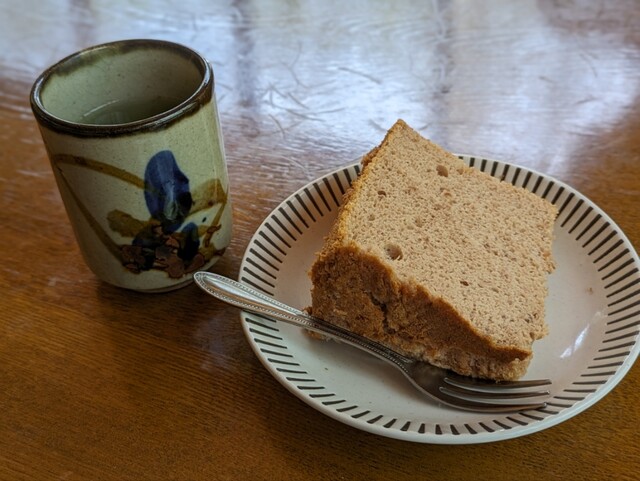 食後には女将さん手作りの「いちごのシフォンケーキ」、ふわっふわの生地と、優しい甘さのいちごの風味が口の中に広がり、最後のデザートまで大満足