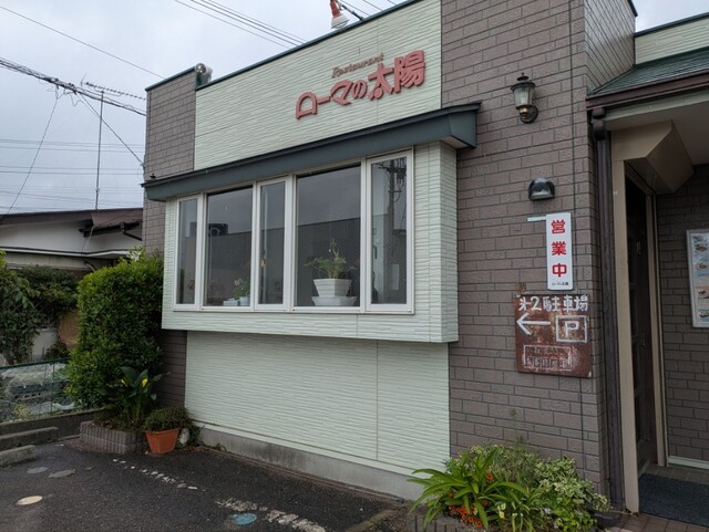 以前から気になっていた洋食屋さん「ローマの太陽」へ、嫁さんと念願の初訪問です。梅雨空の土曜日、お昼時で駐車場はほぼ満車、人気の高さがうかがえます。店内には1組の待ちがありましたが、運良くカウンター席が空いており、すぐに着席できました