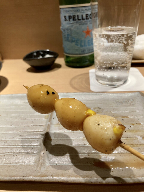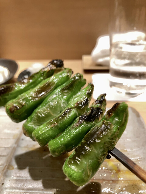今回は[レバー]からスタート。美味しいですね〜。ところどころに入ってくる野菜焼きが良きです。手羽先、やげんなんこつ、茄子、ひざまわりなど、特に美味しかった。ラストの[ズッキーニ]も美味しかったのですが、ひと口で食べたら熱くて、焦りました(笑)それと、1番好きな[せせり]は、ストップ後に提供されたため、食べ損ねました。次は『早めに』とリクエストしようかなと考えています。