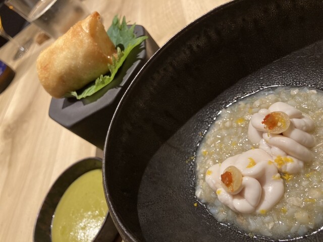 2年ほど前に児玉シェフの料理に出会い、ものすごい衝撃を受け、このたび実店舗へやっと足を運べました。何を食べられるか、どんな料理なのか、って普通は考えますが、まず、アタマをカラッポしにして、行くのがおすすめです。だって、凡人が考えて、思いつく料理は出てきませんから。ひたすら、想像力と五感を働かせて、じっくりといただきたい料理なんです。