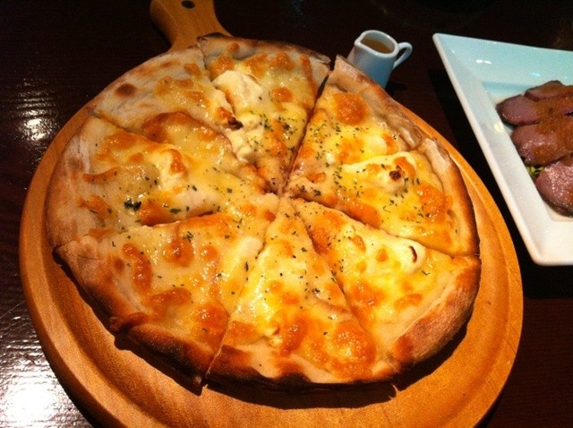 4種類のチーズのピザ。ハチミツをかけていただきます