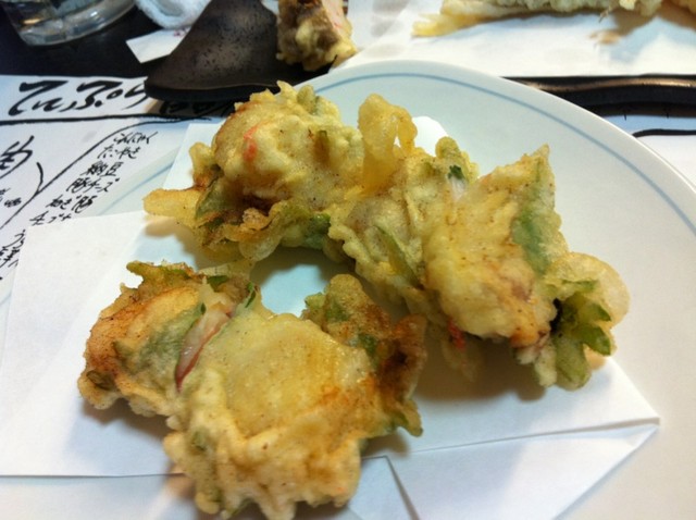 帆立明太の天麩羅。天麩羅メニューがたくさん!女の子にはアイスの天麩羅が人気です。