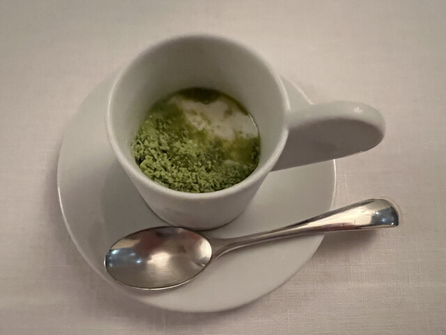 グリーントマトとバジリコのソルベ ブッラータのスプーマ