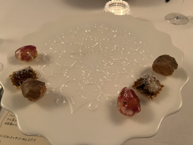 シャインマスカットとクイーンルージュ なつめ茶と赤ワインソース