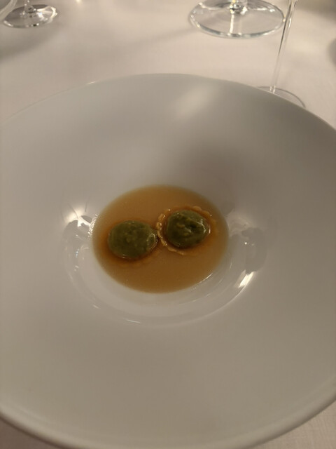 尾長鴨とブロッコローフィオラーロのラビオリと白トリフ