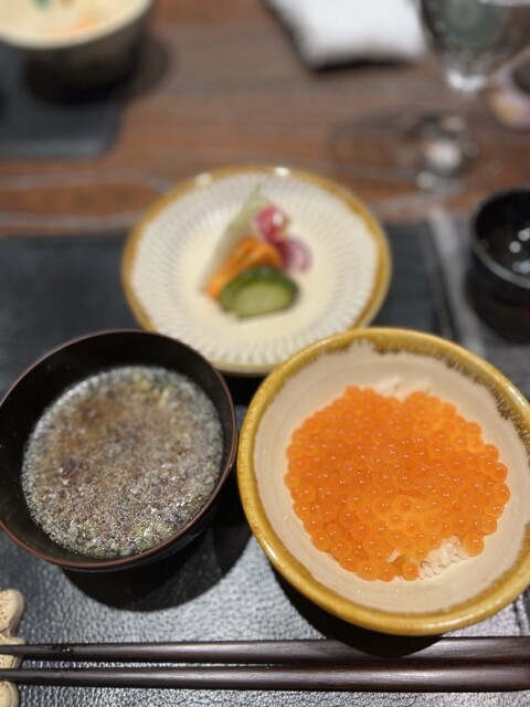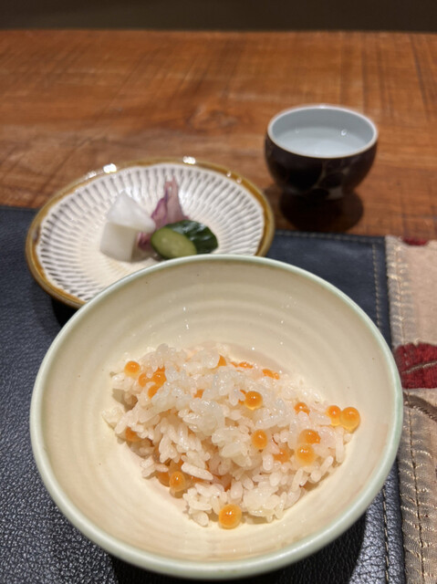 メインのご飯はいくら。2パターンで食べさせて頂きましたが印象が全く異なり非常に美味しかったです。