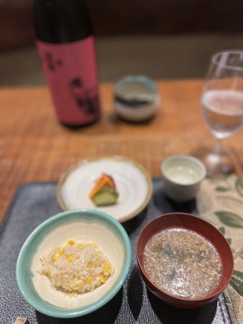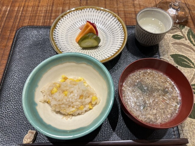 〆のご飯はとうもろこし。2杯目は味変でチャーハン風にしてくれてこれがまた美味しい。