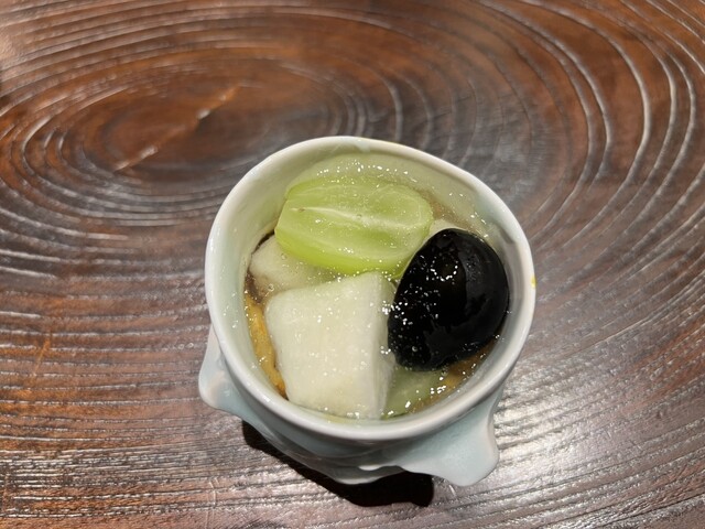 ぶどう2種 洋梨 クリームチーズムース グランマルニエのゼリー