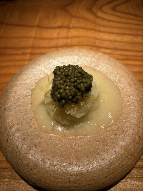 ジャガイモ キャビア 醗酵バターとコラトゥーラのソース