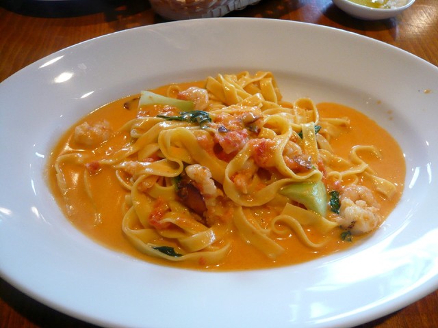 ●小エビとチンゲン菜のトマトクリームソース タリアテッレ