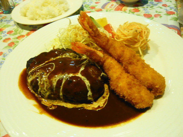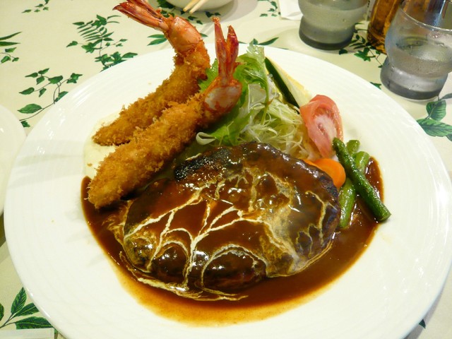 ハンバーグ&エビフライ