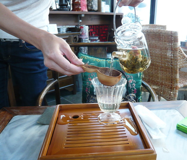 オーナーさんがお湯を注いでくれて、お花が開いていく様子を眺められて楽しかった。
