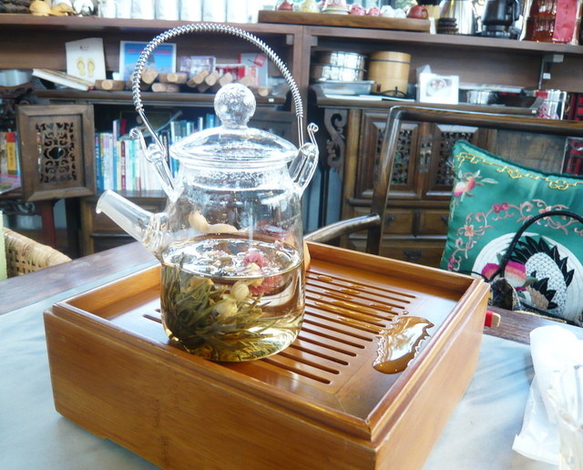 工芸茶でガラスポットに綺麗にお花が咲くのが見えて綺麗♪