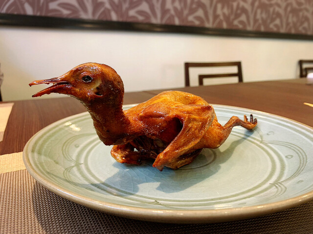 まさかの鳩の姿焼きを調理する前に見せてくれました。