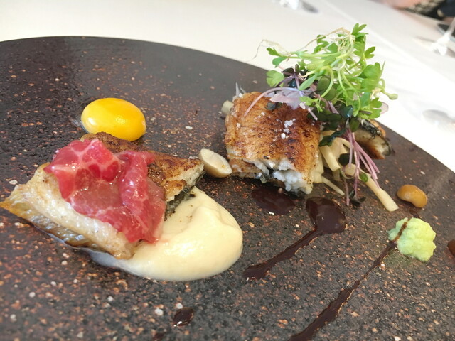 浜松鰻、桜肉、卵黄、根セロリ、春ごぼう