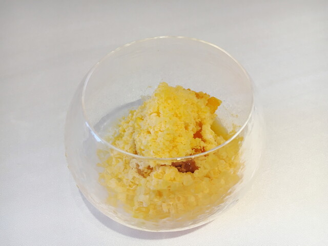 羅臼雲丹、葛粉チップ、ブロッコリー
