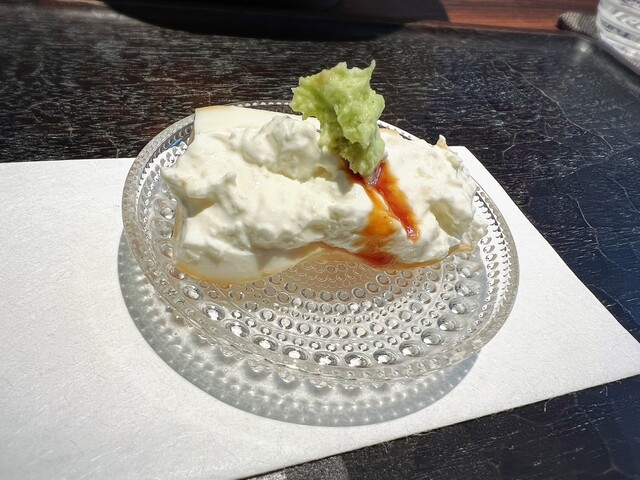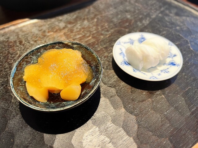 ●蒸し鮑 肝ソース エストラゴンビネガー入酢味噌
