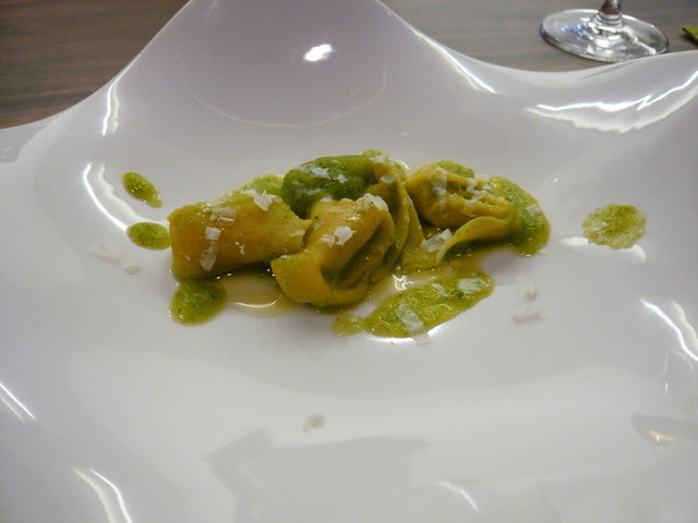 万願寺唐辛子を詰めたトルテッリ ズッキーニのソース