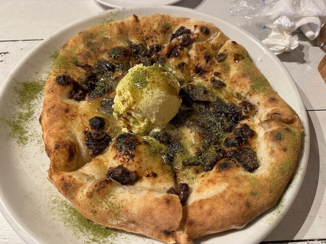 ・さらにデザートピッツアの粒あんマスカルポーネも美味しいんだけど、以前と異なるのは抹茶パウダーがかかっていた…色味は良くなったとは思うけど。