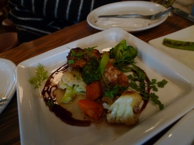 岡山の友人から連絡が・・・「今夜大阪に行くからご飯一緒にいかが?」おっとー!どこ行こ?何食べよ?中津に宿泊するとのことなので北エリアを検索食べログにて「ビトレス」に行き当たる何かリーズナブルやし、よさそうやんがっつり系の私たちに「野菜」ってどうなん???と思いながらもワインの安さにここに決定!行ってみてびっくり!前から気になっていたお店だったちょっと嬉しくなり一番乗りで店内へほどなく友人と合流食べログクーポンをお見せすると「ワイン1000円引きか飲食代10%引きどちらにされますか?」とそりゃあ1000円引きでしょとお伝えしたもののよくよく考えてみれば3人で1万円で同額いや、それをオーバーする気がするってことで10%引きに変更してもらうもう変更できませんよと優しい笑顔で釘をさされるあはっ・・・すみません1本目 DOMAINEDEMONTRABECHBLANCVIOGNIER(ドメーヌ・ド・モンラベッシュ 白)フランスのワインでしっかりとした辛口お店での価格は2500円ですがネットで探してみたところ驚愕の価格が・・・!!!このコスパはありえないレンコンのバルサミコ風味きんぴらこの謎の一品、結構いけますトマトのオーブン焼き大根とフォアグラのソテーこれはめちゃ旨です!この料理がとなりを通っていったので思わず注文しちゃいましたなんだったか忘れてしまった・・・鶏肉料理かな?2本目Barondel'Enclos2009(バロンドランクロ 白)フランスの白ワイン先ほどのものと比べるとさらっとした飲み心地こちらも2500円ですが市販価格は驚愕のお値段まるごとロールキャベツカットされているのですがこれはちょっとがっかり「まるごと」というネーミングから大きなものを期待していたのにカットされたものはかなり小さいキャベツの量も少なかった味も普通・・・ポテトサラダ鴨ロースト3本目LAURIERSTenmpranillo(ローリエ テンプラニーヨ)フランスでは珍しいテンプラニーヨ100%のワインテンプラニーヨらしいしっかりとした味こちらも2500円クリームチーズの純米酒粕漬け酸味がさらに強くなり、日本酒独特の香りがします一瞬美味しいと思ったのですがワインとは合いません何に合うのかよくわからないやっぱり味噌漬けとか酒盗あえの方がいいなチーズ盛り合わせ4本目Vind'AlsaceGENTIL(バンドアルザス ジャンティ 2009 白)フランス・アルザス地方のフランス認定の有機ワインネットでは2100円で売られているところも・・・こちらは2800円実はこのワインを注文した記憶がない店員さんと私が相談して決めていたらしいのですが全く記憶にない写真はちゃんと撮っているのに・・・というわけで味も覚えておりませんせっかくいいワインなのに残念というわけでじゃんじゃん飲んで食べて安いはずが一人5000円程となりました10%引きにしててよかったよ・・・訪問した日は火曜日だったので予約せずに行ったのですが店内は満席週末はもっと混むと思うので予約は必須かな?週初めのほうがおすすめかも