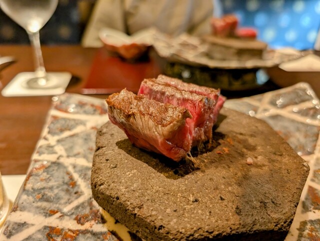 鱧づくしのプランを予約しましたが、一昨年のヴィラ楽園のように何でもかんでも鱧料理ということではなく、お造りや淡路牛の溶岩焼きなどバランスの良いメニュー構成です。