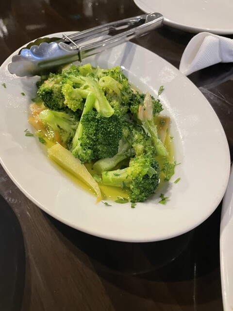 今日もは前菜盛り合わせ、ブロッコリーのガーリックマリネ、鶏のコンフイーどれも美味しい。。